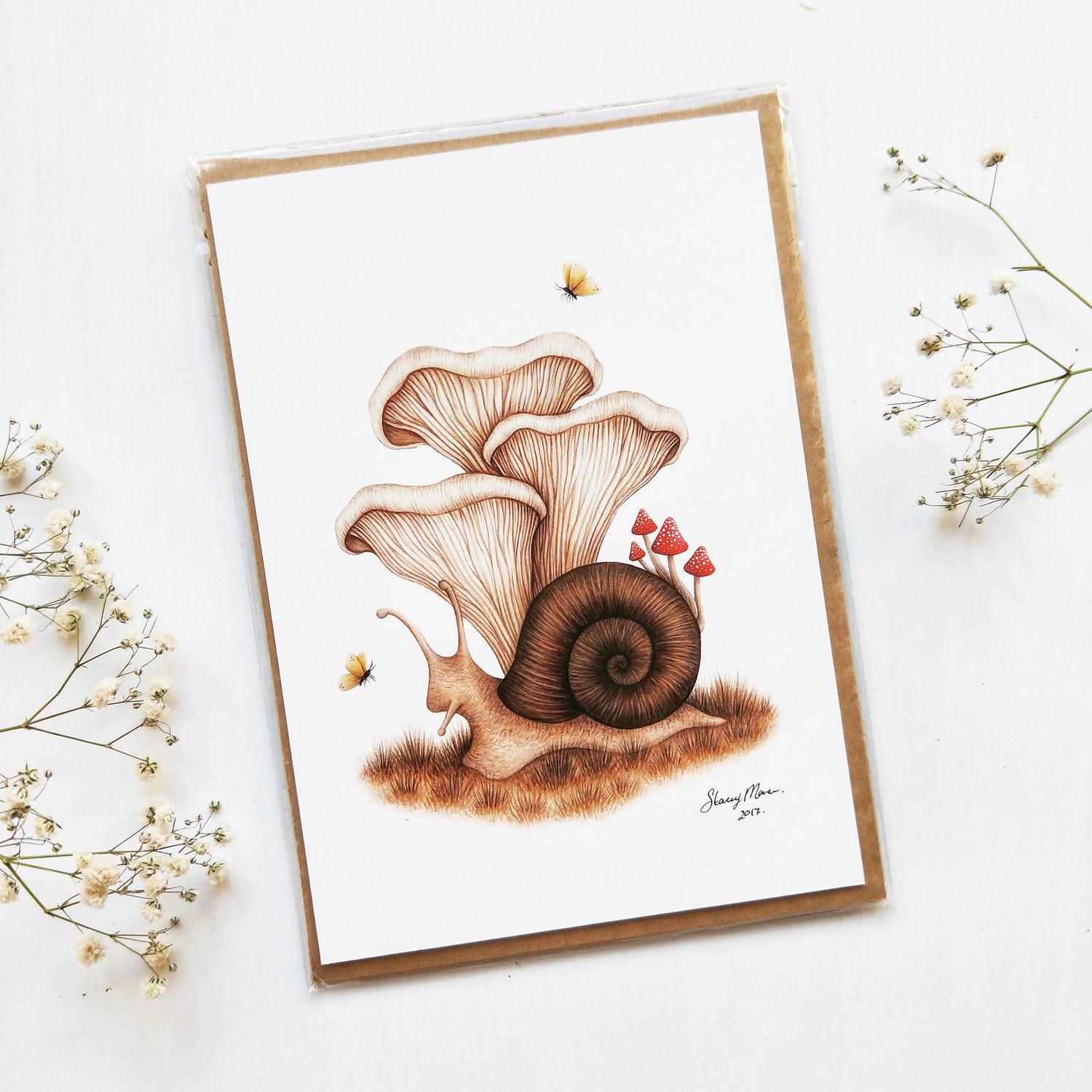 Forest Floor Original Pen And Ink Drawing Of 2 Mushrooms Original Print